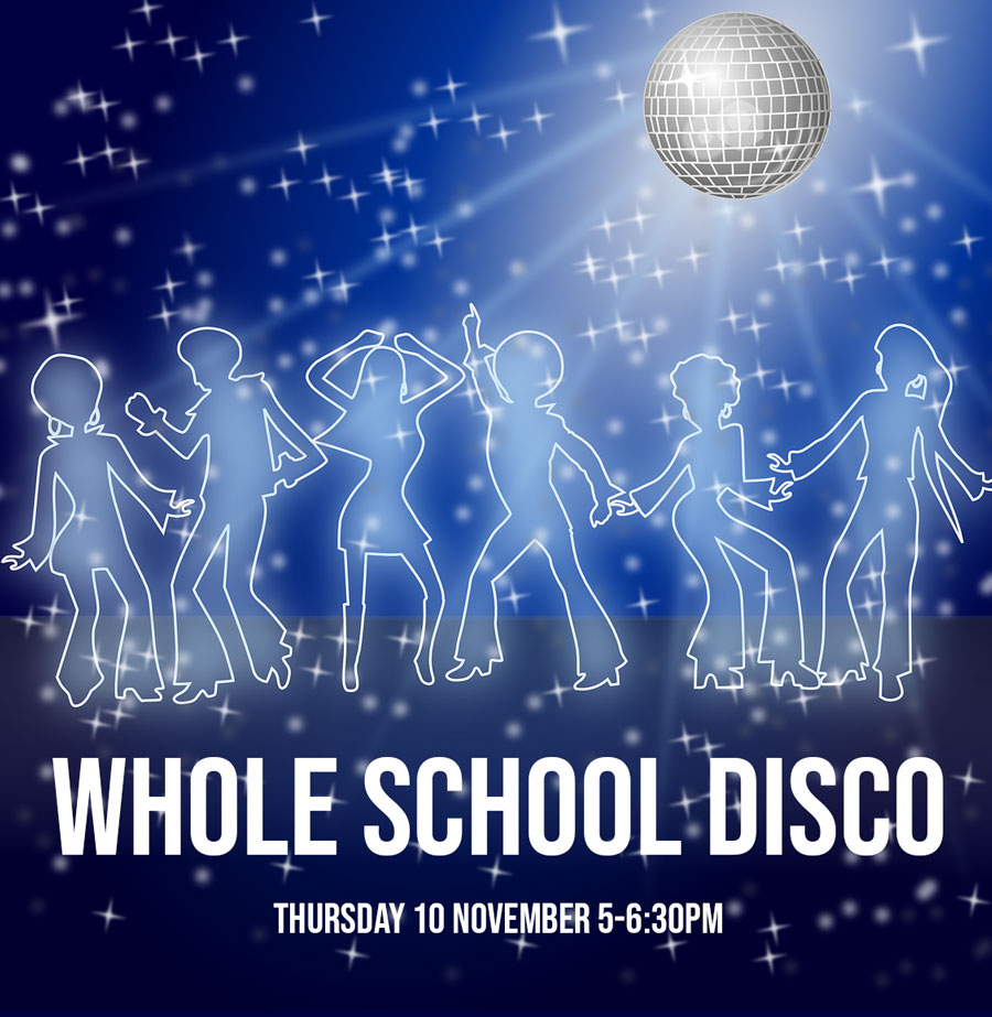 Whole School Disco will be held in the school gym from 5pm to 6:30pm.