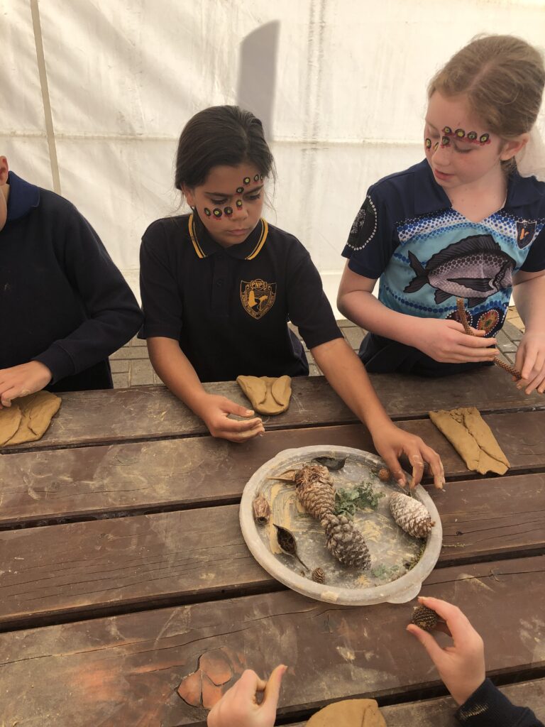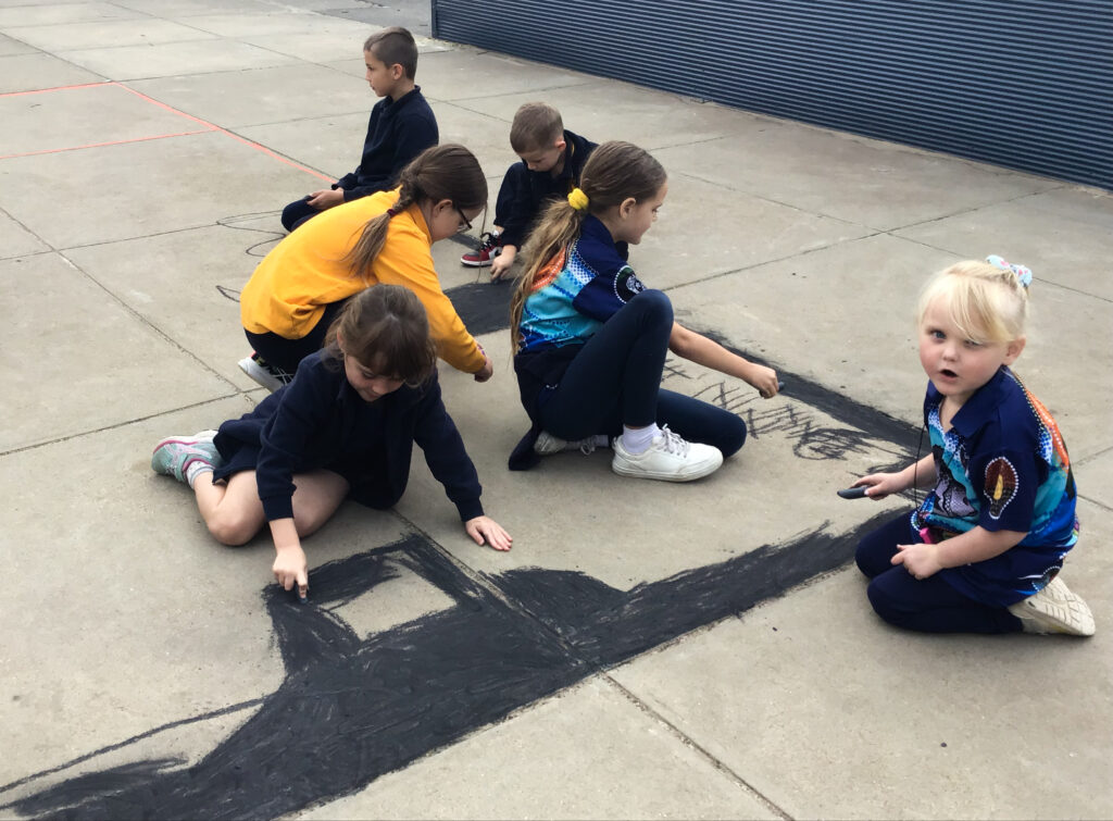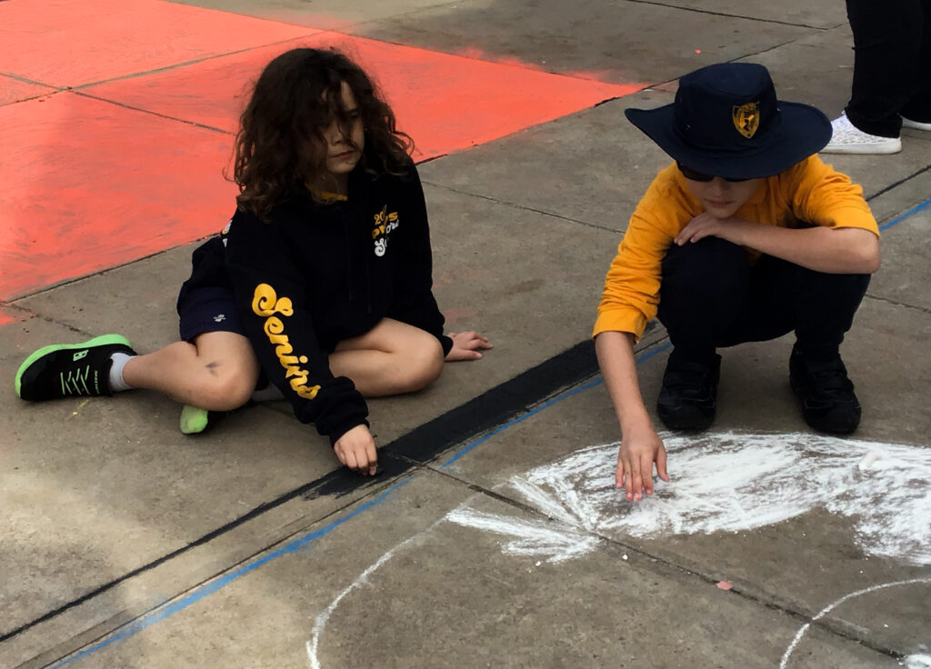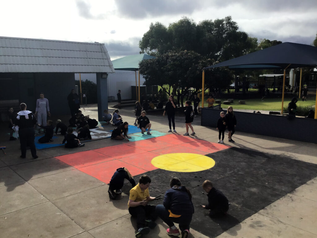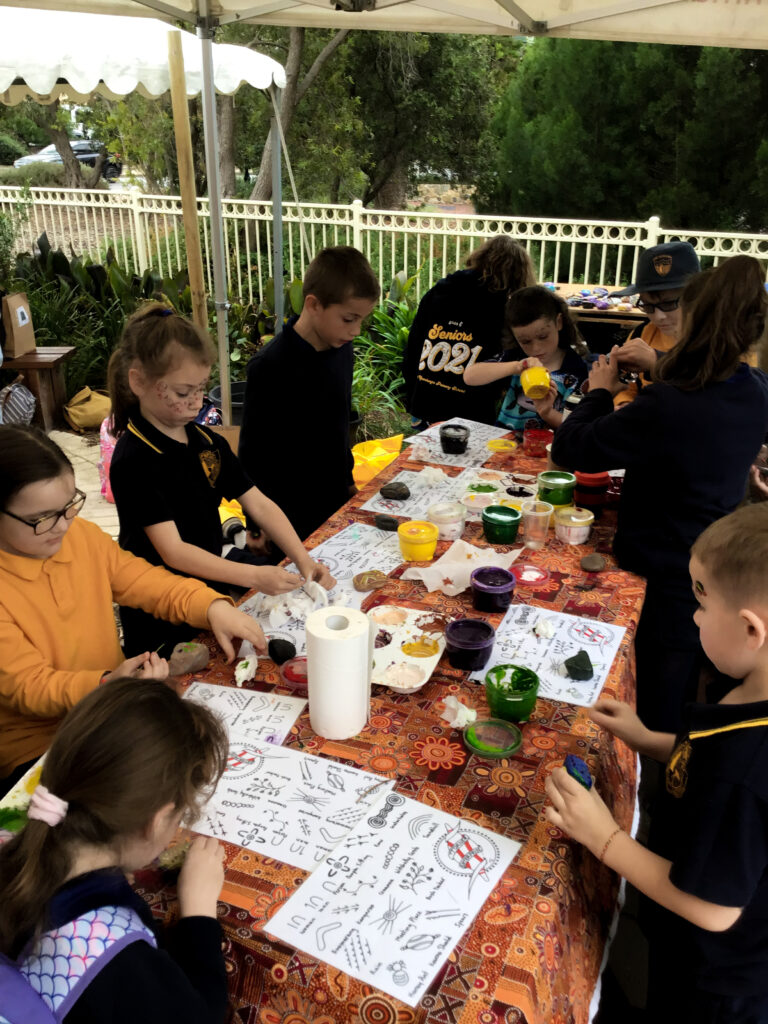 There were some exciting activities and events that students participated in at Porties for NRW this year, as well as some meaningful learning tasks. Students collaborated to chalk the Aboriginal and Torres Straight Islander flags onto the pavement—a stunning and impactful visual. There was rock painting, puppet making, tool crafting, and more.