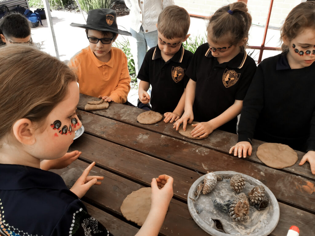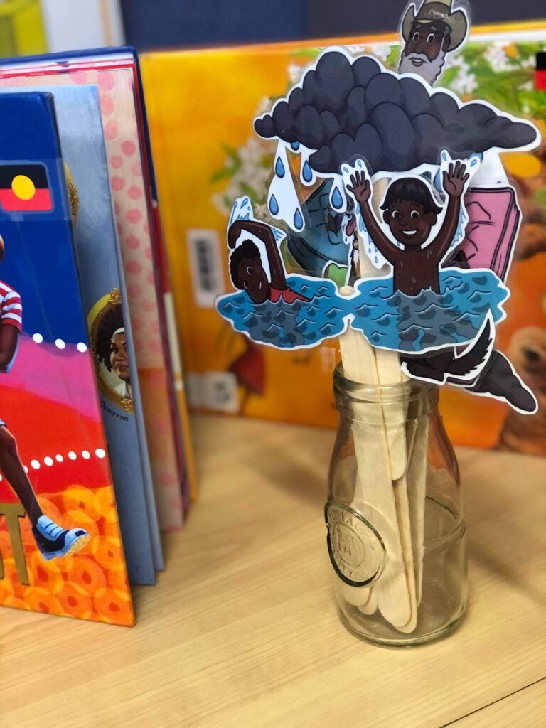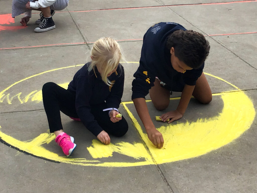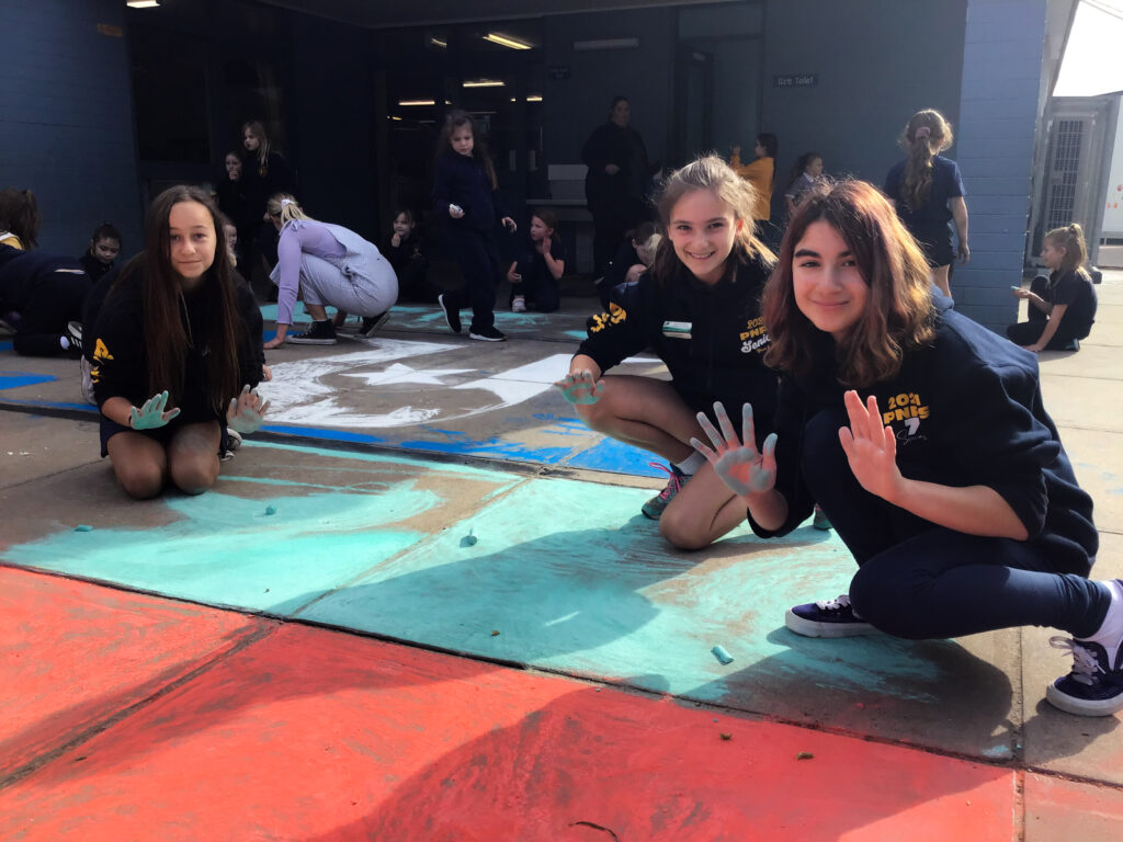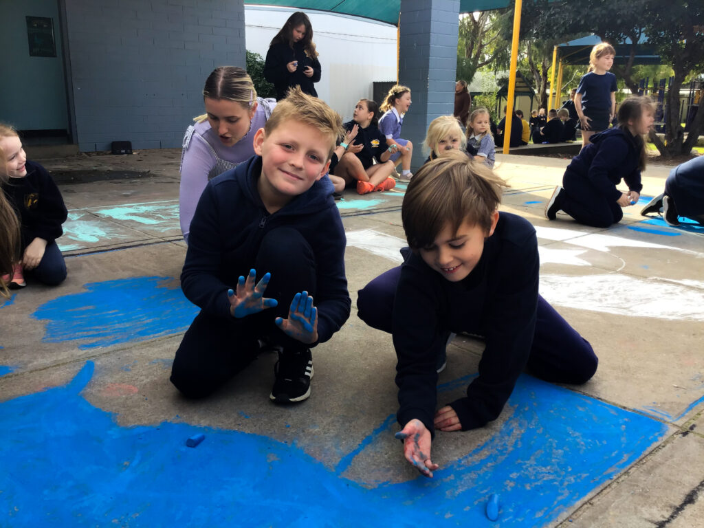 There were some exciting activities and events that students participated in at Porties for NRW this year, as well as some meaningful learning tasks. Students collaborated to chalk the Aboriginal and Torres Straight Islander flags onto the pavement—a stunning and impactful visual. There was rock painting, puppet making, tool crafting, and more.