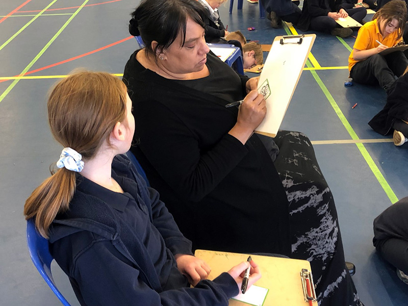 Students workshopped with Scott on the first morning to create an overall design for the mural, which incorporated pieces of their own artwork designs.