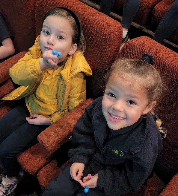 Once we arrived at Hopgood Theatre we were greeted by many flowers in the front foyer. Students explored and when pressing the buttons, they had to listen very carefully. From a knock-knock to an international welcome, these bright and vibrant flowers prepared us for the colourful ride we were about to embark on.