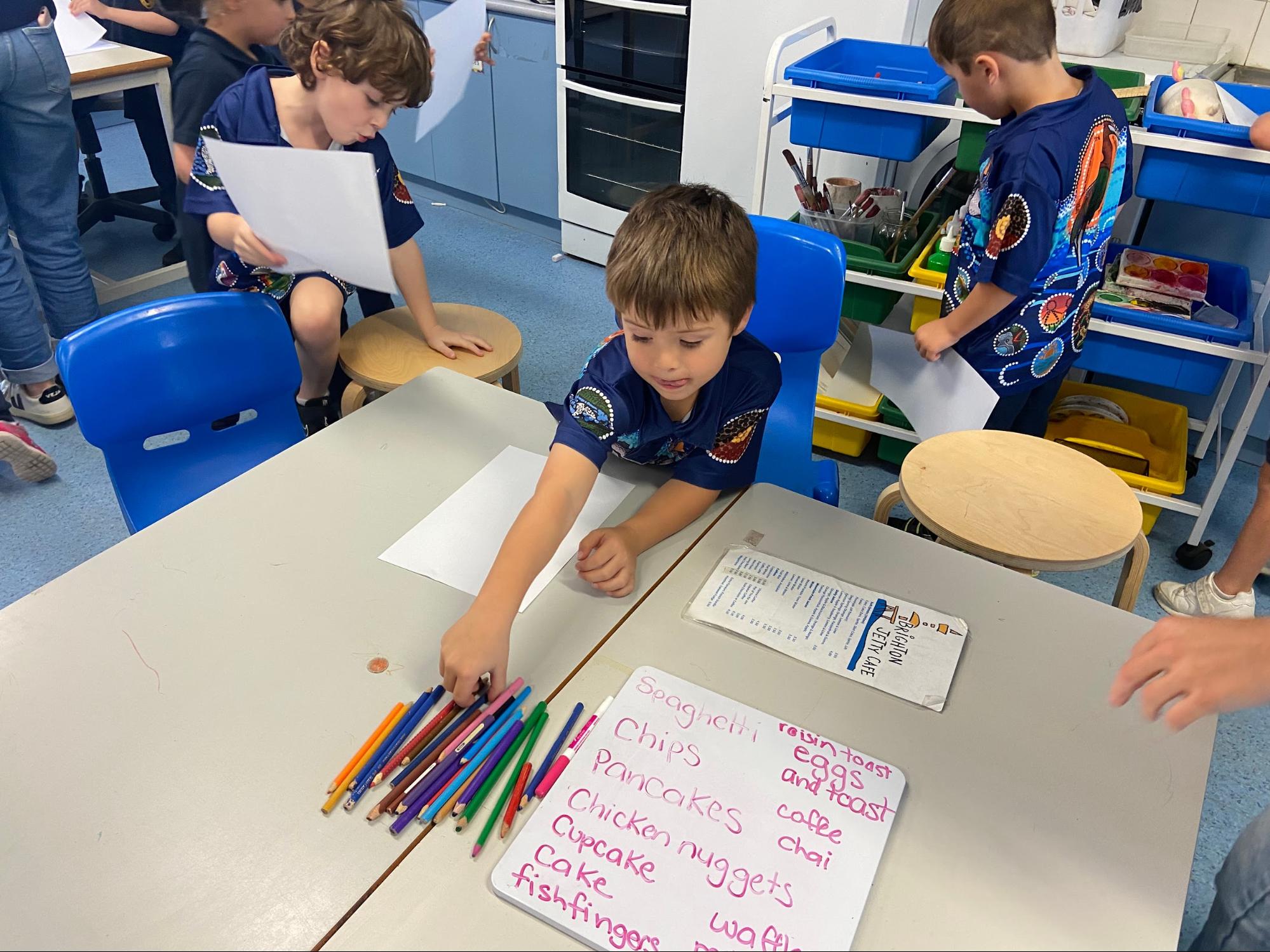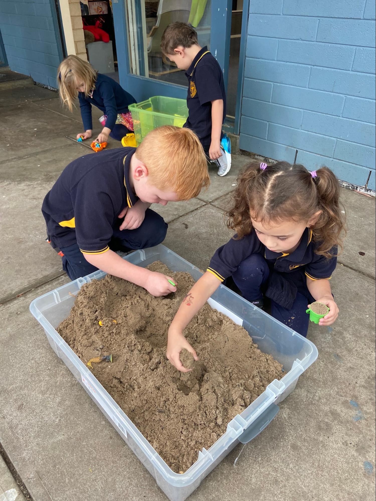 Play Based Learning happens three afternoons a week, Mondays, Wednesdays, and Fridays. Each week, the students from Mrs Gwatking, Miss Bayly and Miss Emily’s classes work with a small group of their peers looking at a particular topic.