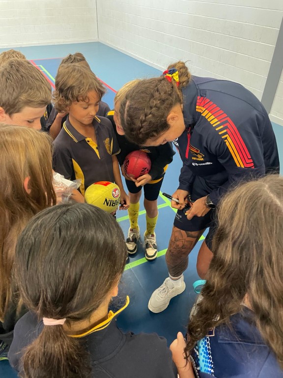 In Week 3 of this term, we had the extraordinary privilege of welcoming some AFLW players from the Crows team to our school. Their visit was not only inspiring but also deeply enriching for our students and staff.