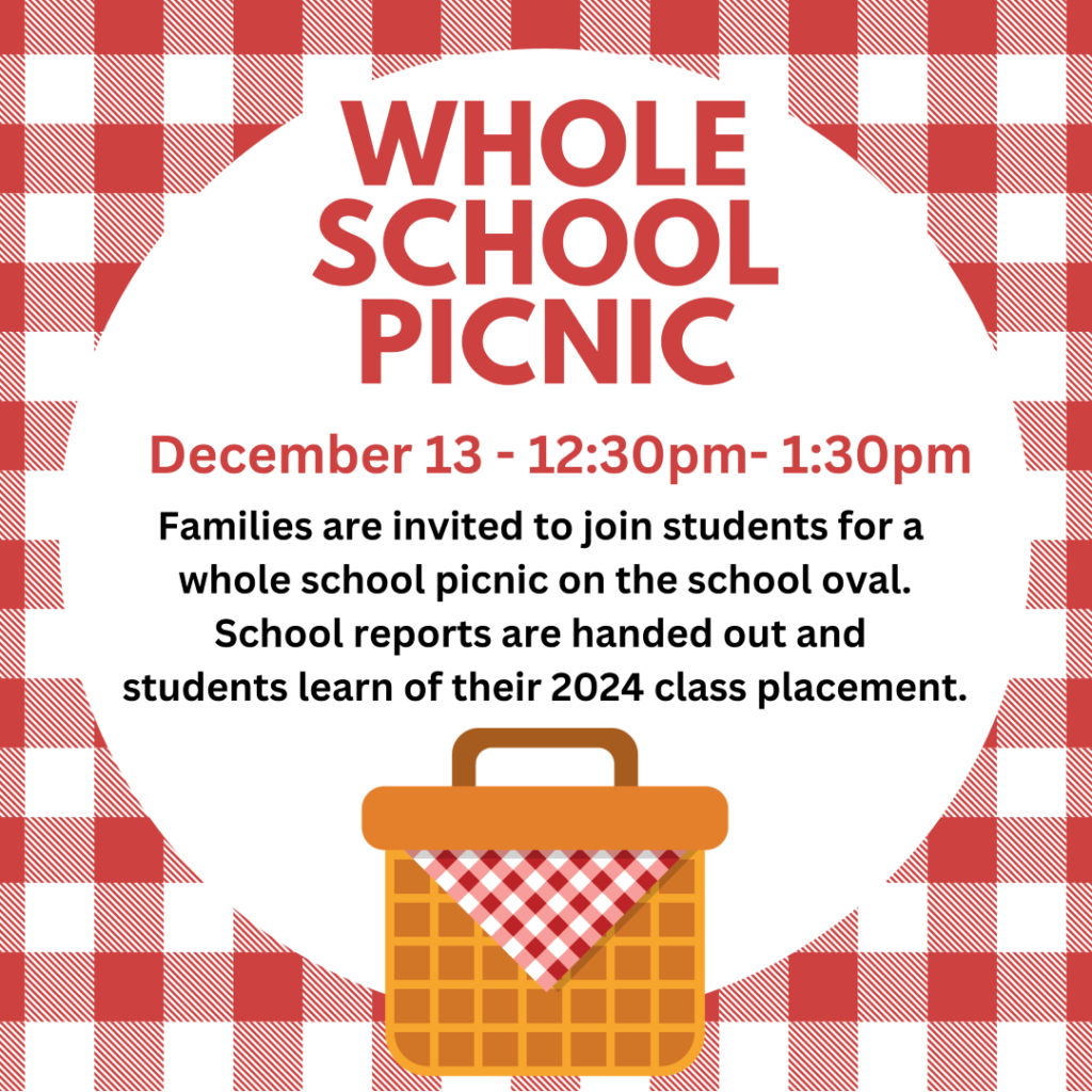 Whole School Picnic – Wed, 13th December at 12:30pm