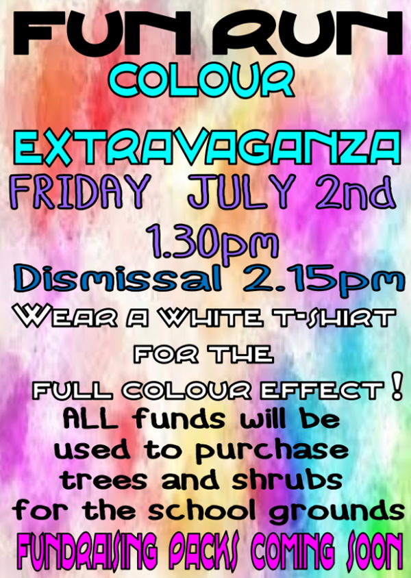 Fun Run Colour Extravaganza will be held on Friday 2nd July at 1:30pm. This year we are fundraising a little differently and will be managing this ourselves rather than accessing an external company for fundraising support. This means that 100% of profits will go to the school. The funds will be used to purchase trees […]